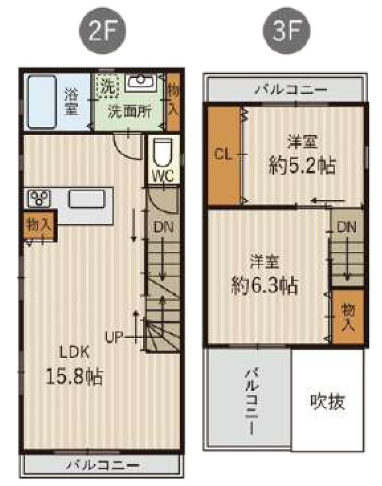2階にキッチン・お風呂・洗面室があります。
