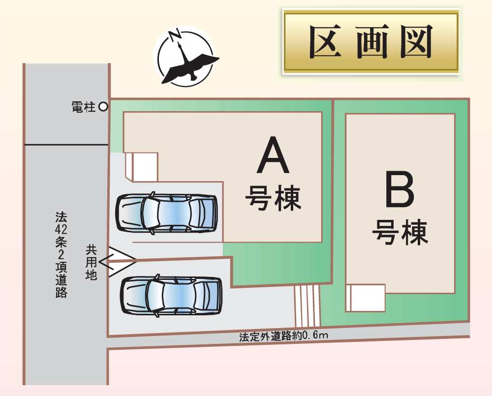 西側幅員約4m公道(法42条2項)、南側幅員0.6m法定外道路