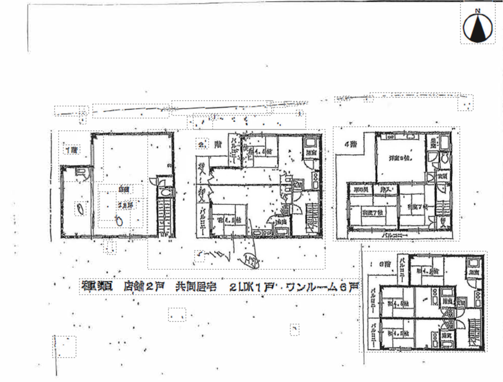 店舗2戸+共同居宅2LDK1戸+ワンルーム6戸