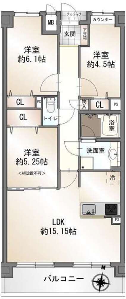 ■洋室約5.25帖はエアコン設置不可