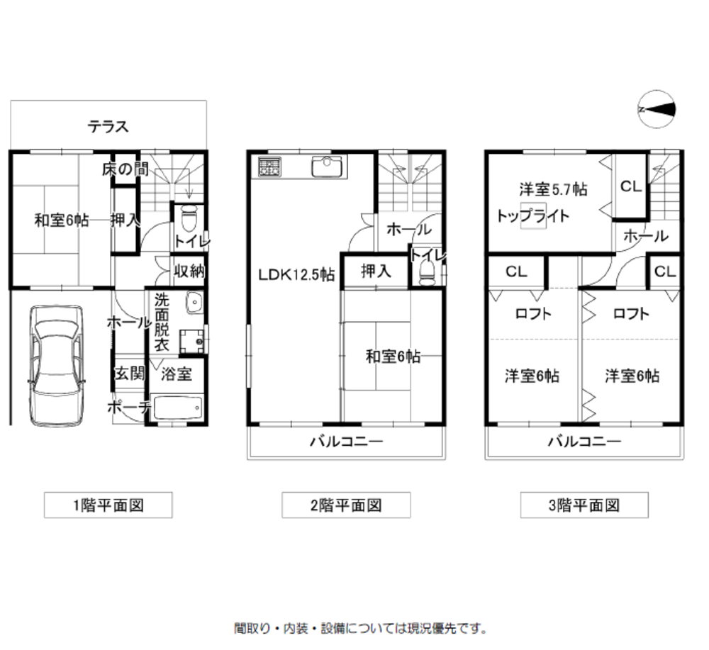間取り、内装、設備については現況優先です。