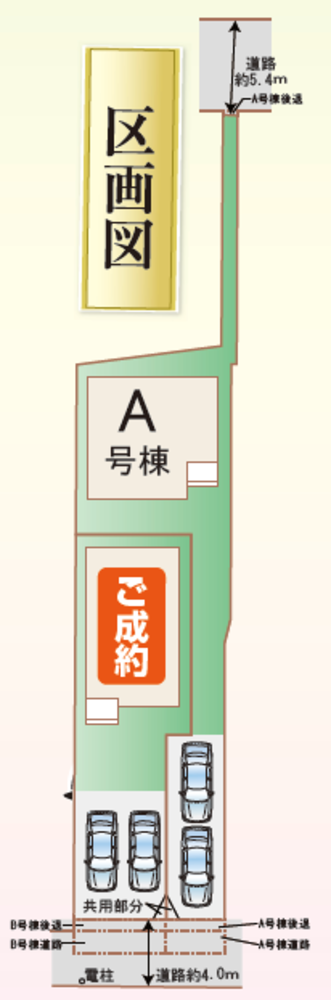 南 側幅員約4m私道(42条2項)、北側幅員5.4m公道(42条1項5号)